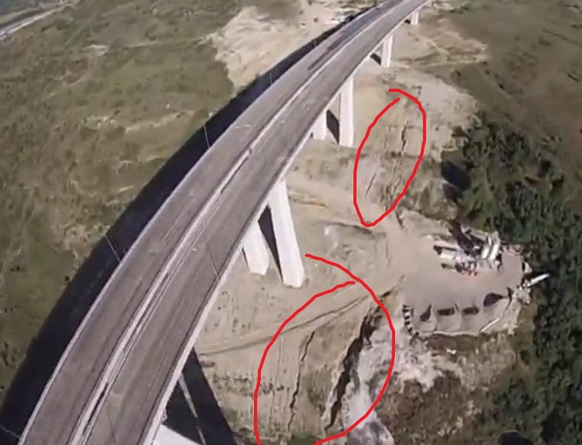 În imaginile surprinse din aer se poate observa că pe tronsonul trei au apărut noi alunecări de teren, iar termenele pentru terminarea lucrărilor au fost prelungite.
