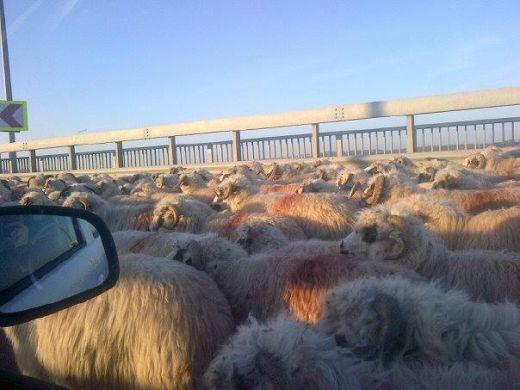 Şoferii care au circulat ieri pe autostrada către mare au putut vedea partea "mioritică" a ţării noastre. În zona Cernavodă, o turmă de oi a invadat carosabilul în tranziţia către pajiştile cu verdeaţă.