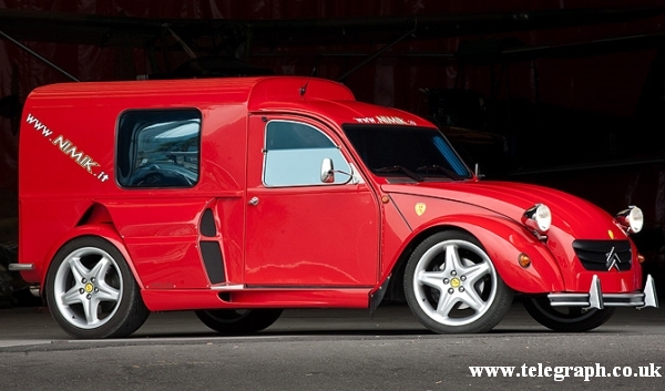 Maşina a luat naştere prin combinarea motorului unui Ferrari F355 cu o caroserie de Citroen 2CV. Pentru ca look-ul autovehiculului să fie desăvârşit, cei doi au vopsit maşina într-un roşu aprins specific Ferrari-urilor. Automobilul atinge viteza de 100 km/h în mai puţin de cinci secunde.