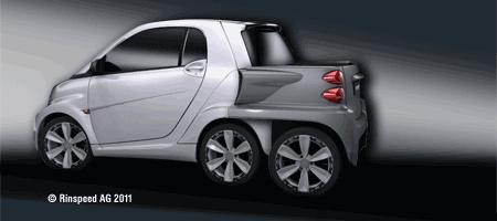 Rucsacul pe roți poate fi configurat în mai multe feluri. Printre acestea se numără o cutie încălzită pentru depozitarea de pizza, destinată serviciilor care le livrează, sau o cutie cu diverse compartimente pentru unelte, adresată meșterilor care utilizeaza mașina la locul de muncă. Smart-ul Rinspeed va fi prezentat la Salonul Auto de la Geneva din 2012.