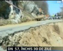 Drumul Naţional 57, care face legătura între oraşele Drobeta Turnu Severin din Mehedinţi şi Moldova Nouă din judeţul Caraş Severin, a fost închis pentru cel puţin 30 de zile. O porţiune de mai bine de 20 de metri din şosea s-a surpat, în urma unei alunecări de teren, provocată de ploile din ultimele zile.