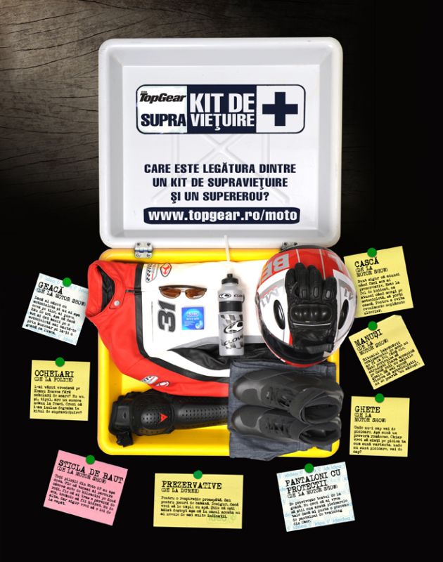 În cadrul campaniei cititorii sunt invitaţi să scrie despre cel mai intens moment pe motocicletă în maximum 300 de cuvinte şi pot câştiga unul dintre cele 3 kituri de supravieţuire. Cititorii pot trimite şi inscrie mesajele pe www.topgear.ro/moto.