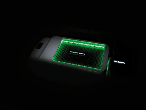 Motorul electric funcţionează ca un generator pentru încărcarea bateriilor. Santa Fe Blue Hybrid foloseşte un accumulator lithiu-polymer de 270V şi nu unul lithiu-ion, frecvent utilizat în prezent. Potrivit Hyunday, acumulatorul lithiu-polymer are o durată de viaţa mai lungă, calitate combinată cu un cost de producţie scăzut şi o mai mare densitate a energiei stocate.