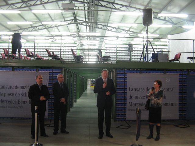 Prin inaugurarea depozitului de la Oradea, Mercedes-Benz România vine în întâmpinarea clienţilor şi partenerilor săi printr-o serie de noi facilităţi şi avantaje, menite să ofere în continuare produse şi servicii de calitate, independent de contextul economic. "Vrem să dezvăluim lumea care se află în spatele maşinilor. Este o sarcină foarte dificilă în actualul context economic însă suntem siguri că un parteneriat solid şi pe termen lung ne oferă şi soluţii pentru mediul de afaceri oricât de dificil ar fi el în acest moment. [...] O bună viziune a viitorului se bazează pe o gamă de produse şi servicii after sales de calitate", a spus Michael Grewe, CEO şi presedinte al Mercedes-Benz România.