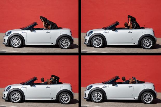 Interiorul adoptă aspectul retro ale celorlalte modele Mini, iar noul acoperiș din material textil este ușor datorită faptului că este operat manual. Structura formată din mai multe straturi poate fi coborâtă din scaunul șoferului, ea grupându-se în spatele șoferului într-un spațiu special.