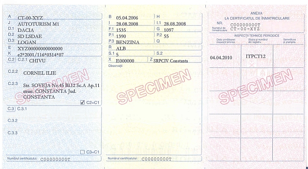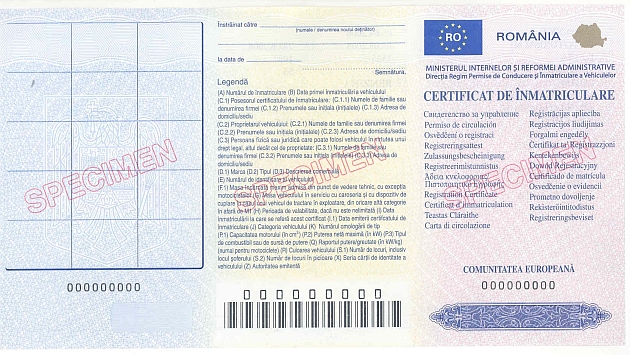 Noul model al certificatului de înmatriculare a autovehiculelor la standard european are mai puţine date decât cel eliberat până în momentul de faţă, însă include data primei înmatriculări şi date referitoare la titularul autovehiculului şi un cod de omologare comunitară.