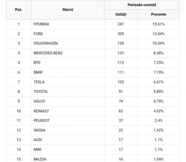 Tesla, considerată mult timp reperul mobilității electrice, a înregistrat 102 unități, în timp ce MG – unul dintre brandurile chinezești care a mizat puternic pe preț – are doar 4 mașini full electrice înmatriculate în septembrie. Dacia Spring, cândva vedeta pieței locale, a scăzut la 14 unități, semn că preferințele cumpărătorilor români s-au rafinat semnificativ.