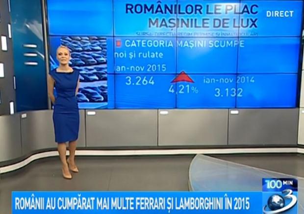 Andreea Sava a arătat miercuri, la "100 de minute", cât de mult iubesc românii maşinile de lux.