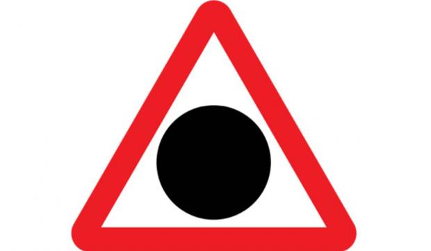 Este vorba de indicatorul rutier în formă de triunghi cu bulină neagră.