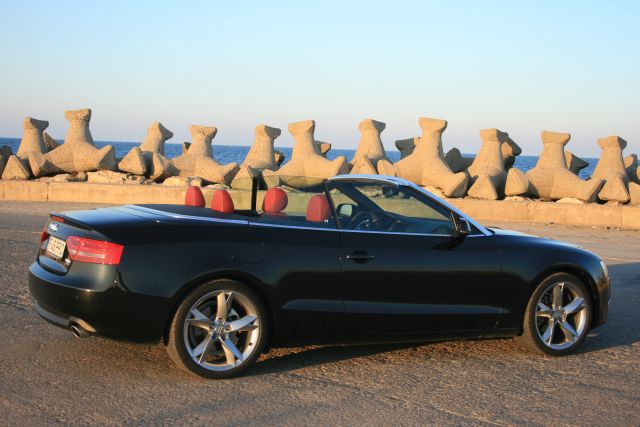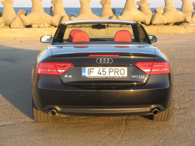 Audi A5 Cabriolet a atras atenția pietonilor, dar și a participanților la trafic, prin formele sale voluptoase, alura sportivă, evidenţiată prin capota alungită, roţile uriaşe şi aripile proeminente. Spatele este caracterizat de linii simple, dar frumoase, cu cele două evacuări cromate şi stopurile cu LED-uri.