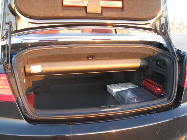 Interiorul se mai remarcă prin faptul că scaunele din spate sunt rabatabile, iar spaţiul din portbagaj, (380 de litri - în total şi 320 de litri - cu acoperişul rabatat), este destul de mare având în vedere că maşina este o decapotabilă. Atenţie, însă, la felul în care sunt așezate bagajele. Acoperişul nu va putea fi coborât dacă o geantă atinge spaţiul din portbagaj destinat depozitării sale. Un senzor se asigură de acest lucru.