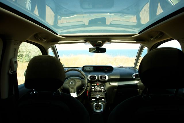 La interior se remarcă, în primul rând, uriaşul plafon panoramic, de 4,52 mp, oferit opţional. Merită, însă, fiecare bănuţ cerut în plus de Citroen. Priveliştea pe care o oferă este de-a dreptul impresionantă. Oricine s-ar urca la bordul unui alt automobil, după ce a coborât dintr-unul cu un astfel de acoperiş panoramic, s-ar întreba de ce nu sunt dotate toate maşinile din lume cu aşa ceva.