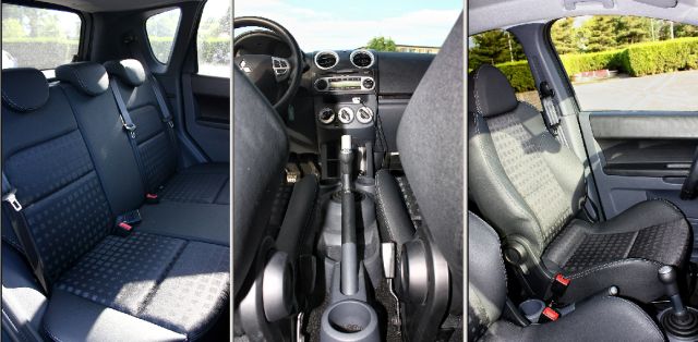 Schimbătorul de viteze micuţ, cu formă ciudată este şi el îmbrăcat în piele. Scaunele sport, pentru şofer şi pasagerul din dreapta, sunt ferme şi asigură suficientă susţinere laterală. Inserţiile de argintiu prezente peste tot în interior, ca şi pedalierul din aluminiu completează imaginea interiorului.