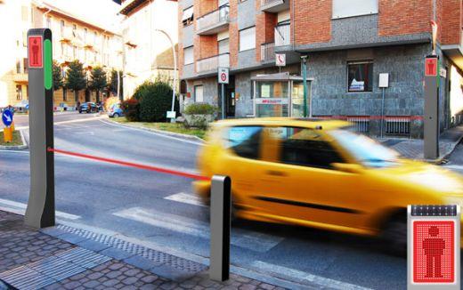 Trecerea de pietoni a viitorului ar urma să funcţioneze după următoarele "reguli": o undă de laser ar opri maşinile să mai treacă atunci când semaforul este roşu, şi la fel s-ar întâmpla şi în cazul pietonilor.