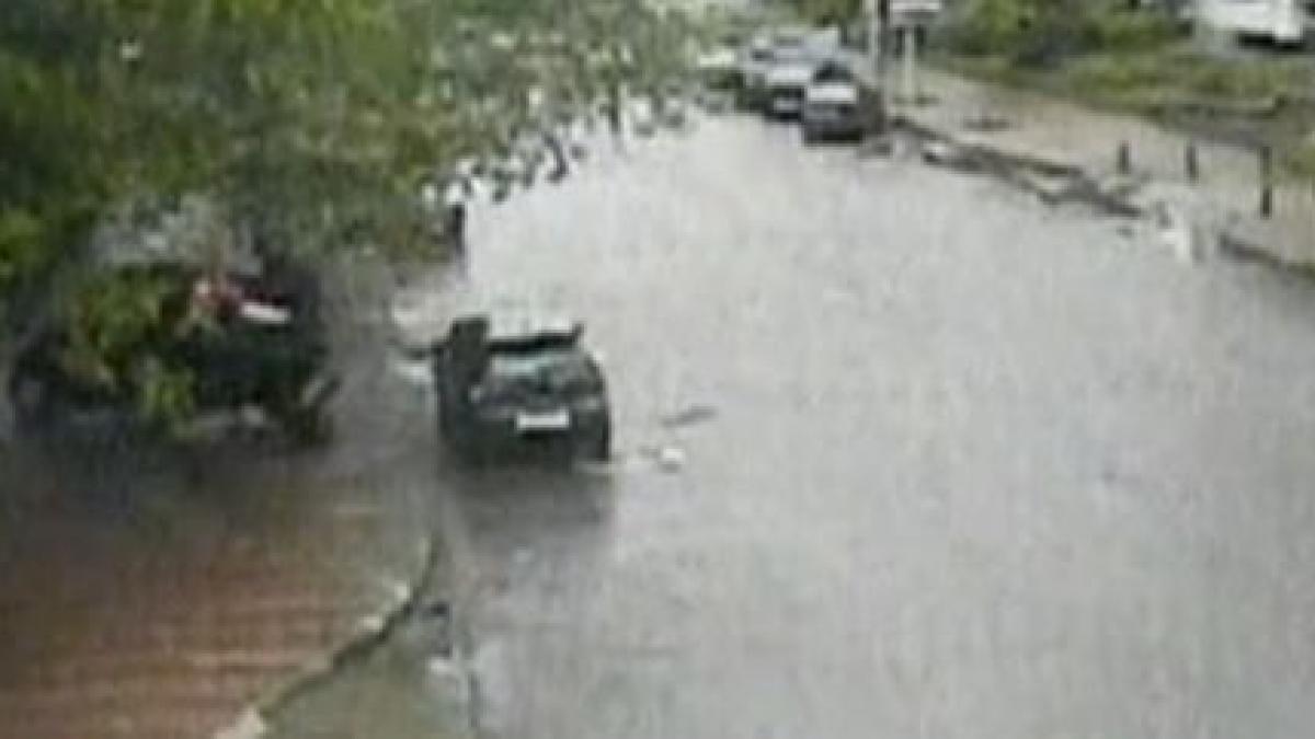 Impactul a fost atât de puternic încât maşina s-a ridicat în aer. Din fericire, niciun trecător nu s-a aflat în acel moment prin preajmă.