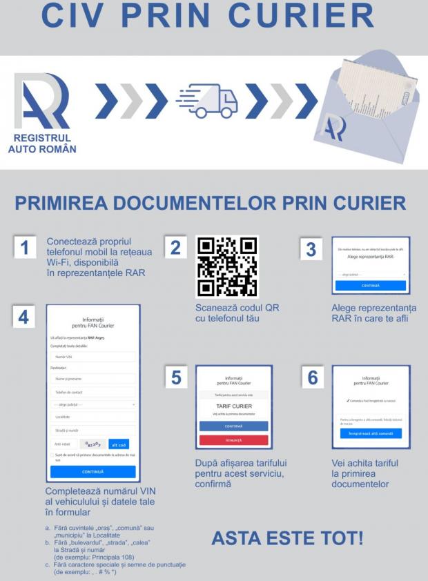 Clienții vor putea menționa pe cererea de activitate pe care o completează la sediul RAR faptul că doresc primirea CIV prin curier și vor scana cu un telefon mobil un cod QR care permite accesarea directă a linkului pentru înregistrarea solicitării.