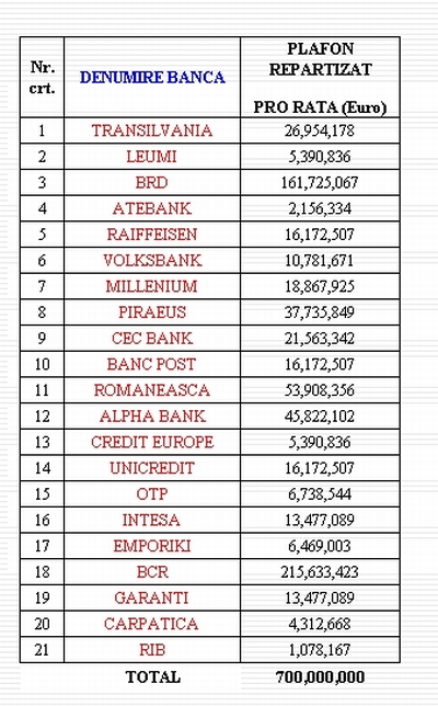 Supra-subscrierea plafonului alocat a impus repartizarea plafonului printr-o diminuare progresivă, corespunzătoare subscrierii. Datele exacte se regăsesc în tabelul de mai jos.