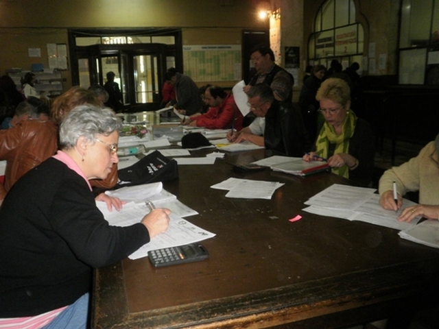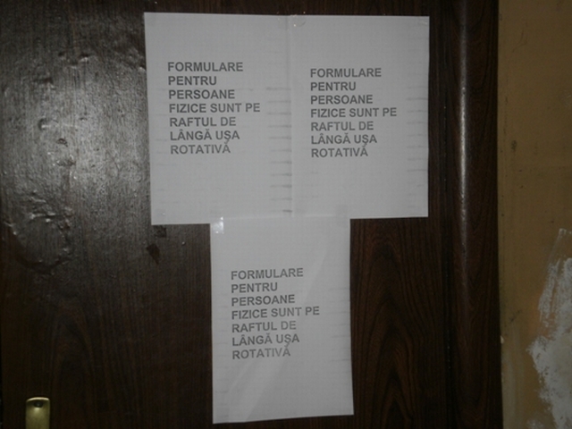 După ce fiecare persoană s-a servit cu declaraţiile de la intrare, oamenii s-au aşezat conştiincioşi la masa imensă din centrul instituţiei publice şi au început să-şi calculeze veniturile şi să completeze foile în două exemplare.