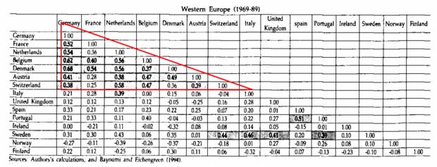 Însă acest lucru nu a fost privit cu ochi buni de multă lume, prin urmare Tamim Bayoumi şi Barry Eichengreen au publicat împreună o lucrare în 1994 în care analizau, pe baza unor grafice şi date concrete, cât de bine s-ar descurca statele europene dacă ar folosi aceeaşi monedă.