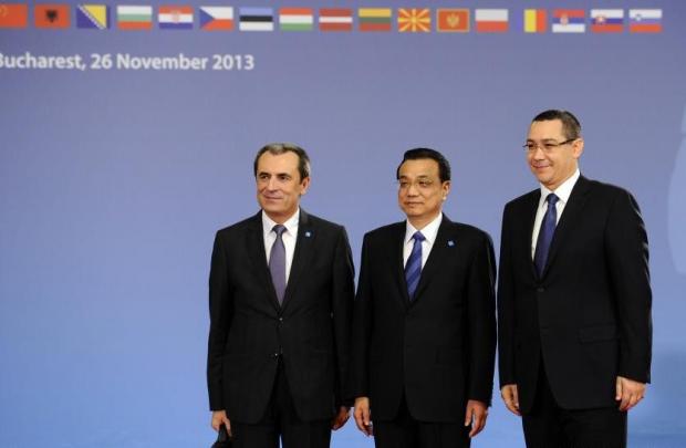 Foto: Premierul Bulgariei, Plamen Vasilev Oresharski (stg), primul ministru al Chinei, Li Keqiang, şi premierul român Victor Ponta