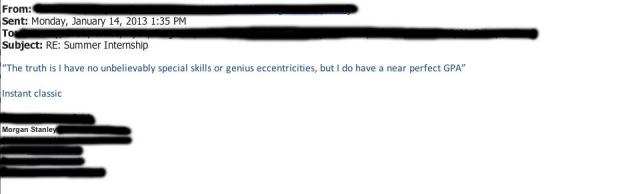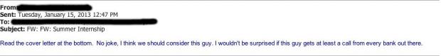 Aşa s-a gândit şi acest puşti atunci când a trimis o scrisoare în care îşi arăta disponibilitatea de a face practică într-una din cele mai mari bănci de pe Wall Street.