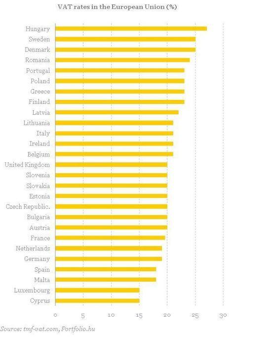 Clasamentul statelor din UE, in funcţie de TVA: