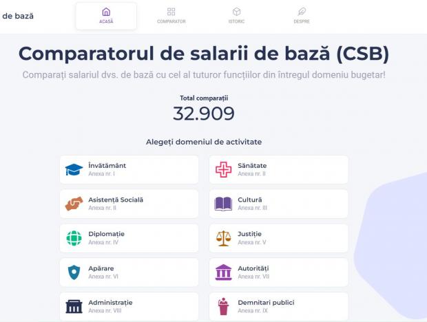Platforma Comparatorul de salarii de bază (CSB) este un instrument de analiză etică, ce permite oricărui lucrător din domeniul bugetar compararea salariului său de bază (brut și net) cu cel aferent tuturor funcțiile din întregul domeniul bugetar.