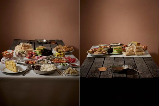 Alăturate, fotografiile arată inegalitatea din farfurie. Ce mănâncă bogaţii şi ce mănâncă săracii?