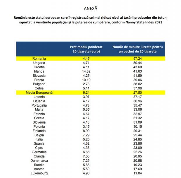 Prin susținerea unei a doua majorări a accizei în acest an, după cea din aprilie, Ministerul Finanțelor ignoră atât faptul că accizele și prețurile țigaretelor din România sunt cele mai mari din UE raportate la puterea de cumpărare, precum și realitatea că, în toate țările învecinate României, țigările pot fi cumpărate la aproximativ jumătate din preț, contrabanda fiind foarte profitabilă.