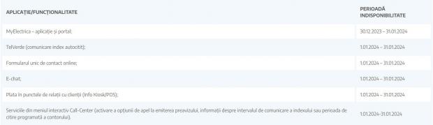 ”În perioada 1-31 ianuarie 2024, realizăm o serie de optimizări complexe ale sistemelor noastre informatice cu scopul îmbunătățirii serviciilor de care beneficiezi, motiv pentru care vor exista limitări în accesarea anumitor funcționalități utilizate de către tine în relația cu noi”, anunță Electrica.
