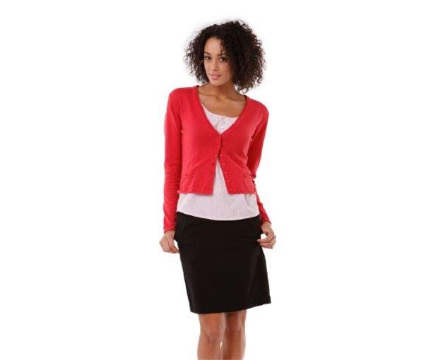 Sport & chic in acelasi timp! Forma scurta trendy. Prelucrata fully fashioned. Decolteu adanc in V, maneca lunga, fenta cu nasturi si 2 buzunare mici. Lungime de la 56 pana la 66 cm, in functie de marime. Lavabila. Material: 100% bumbac.