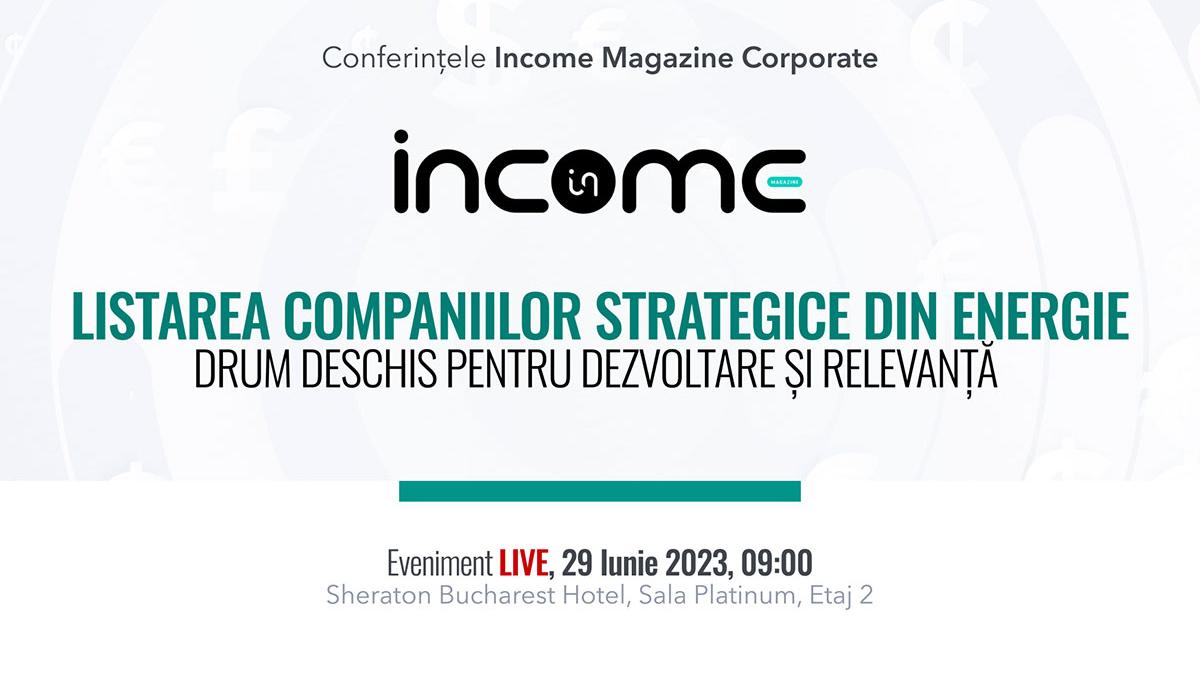 Listarea companiilor strategice din energie - drum deschis pentru dezvoltare si relevanță| Conferinţă naţională Antena 3 CNN “Inome Magazine”Listarea companiilor strategice din energie - drum deschis pentru dezvoltare si relevanță| Conferinţă naţională Antena 3 CNN “Inome Magazine” Conferința este organizată de postul de televiziune Antena 3 CNN, împreună cu săptămânalul economic ”Income Magazine” și continuă seria de evenimente naționale ”Conferințele Income Magazine Corporate”.