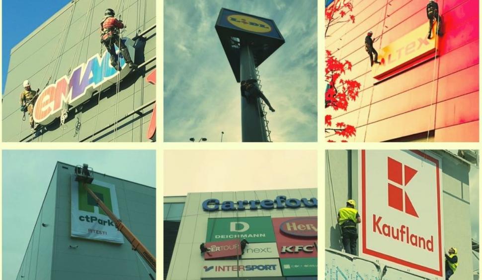 Cum cladirile se construiesc in ultimii ani din ce in ce mai inalte, montarea bannerelor publicitare si a reclamelor luminoase la inaltime poate fi realizata doar de specialisti in lucrul la inaltime, sau altfel spus de catre alpinistii utilitari.
