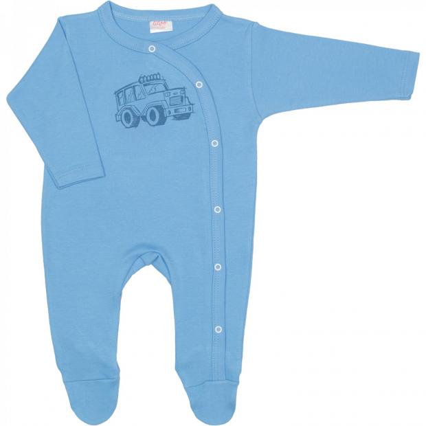 2. Pentru baietei - Salopeta cu maneca lunga si pantaloni cu botosei azur inchis cu imprimeu masinuta - 19,98Lei