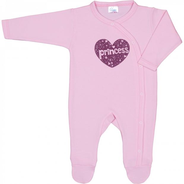 1. Pentru fetite - Salopeta cu maneca lunga si pantaloni cu botosei roz cu imprimeu printesa – 19,98 Lei