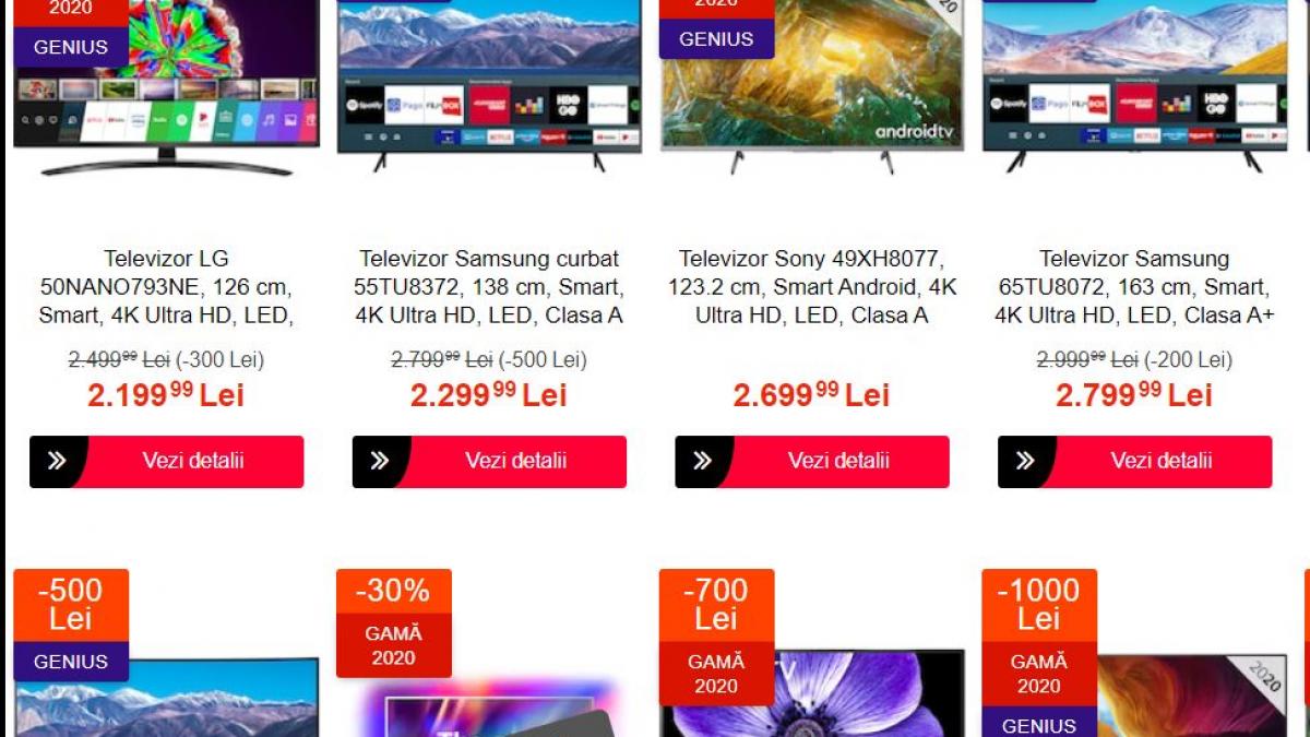 eMAG Black Friday 2020 televizoare. Nu mai putin de 40.000 de televizoare de la diferite branduri au fost scoase la vanzare de eMAG.