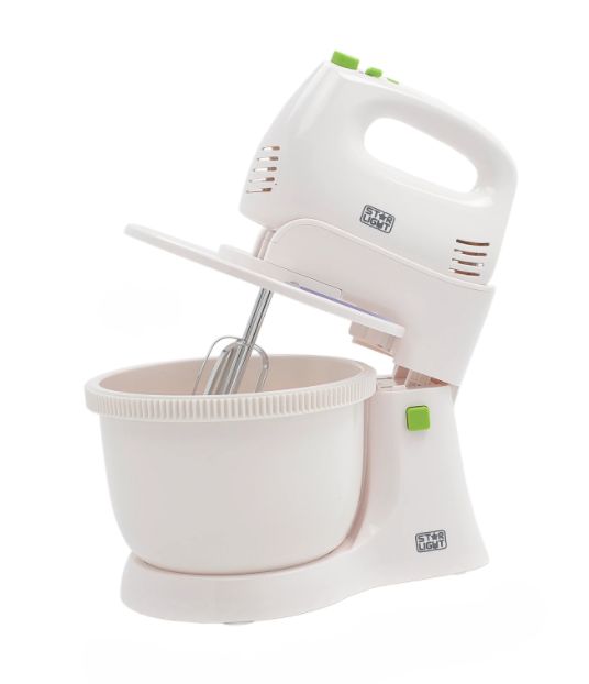 3. Mixer cu bol Star-Light SM-G300, 300 W, Bol 2.5 l, 5 Viteze + Turbo, Alb/Verde.
