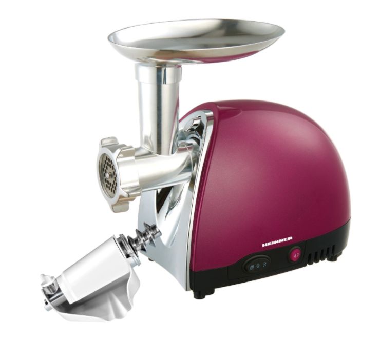 4. Masina de tocat Heinner MG1500TA-BG, 1600 W, Accesoriu pentru rosii si carnati, Cutit inox, Visiniu sidefat.