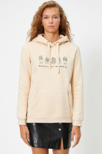 5. Hanorac cu buzunar kangaroo si imprimeu grafic, Maro nisip, de la Koton.