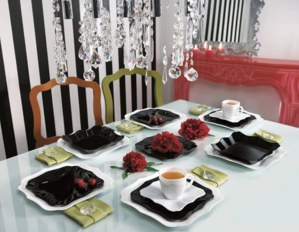6. Serviciu de masa Luminarc Authentic, 30 piese, model patrat alb/negru.