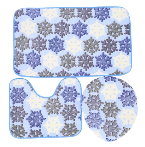 Descriere: Setul de baie , plusat este format din trei piese, doua covorase dreptunghiulare.