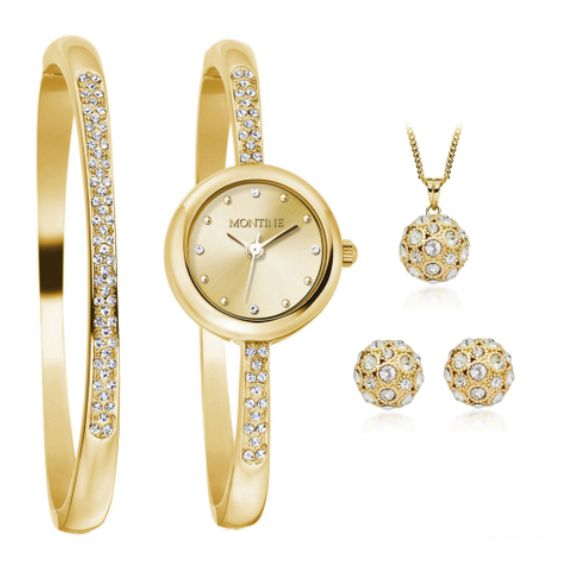 5. Un set alcatuit dintr-un ceas, bratara, colier si cercei de dama de la Montine Gold are o reducere de 43% in campania eMAG cadouri Craciun.