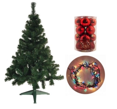 8. Un pachet promotional alcatuit dintr-un brad artificial verde de 150 de cm beneficiaza de o reducere de 58% in campania de reduceri eMAG decoratiuni Craciun.