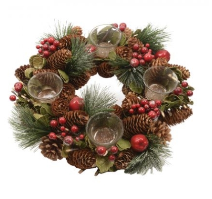 10. O decoratiune de Craciun cu 4 suporturi de lumanari, Kaemingk, din conuri de brad, de 33 de cm, de culoare rosie, are o reducere de 57% in cadrul campaniei de reduceri de pe emag.ro. Cu ocazia sarbatorilor de iarna, puteti folosi decoratiunea intr-un stil elegant si modern. Contine elemente de décor artificiale: fructe de padure si conuri de pin. Pretul este AICI.