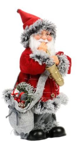 2. Un Mos Craciun muzical Kring, cu saxofon, cu dimensiunea de 36 de cm, in culorile rosu si gri, are o reducere de 59% in campania eMAG decoratiuni de Craciun.