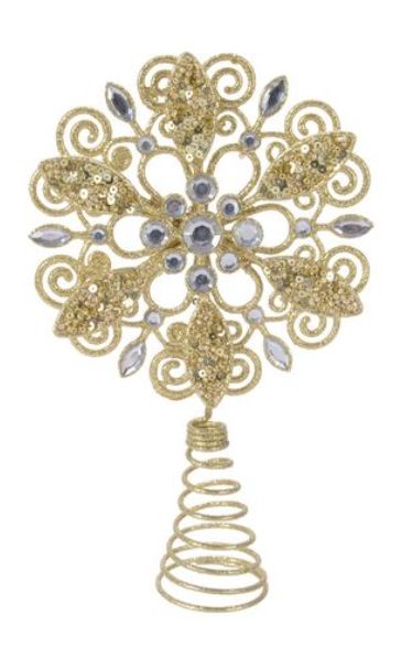 4. Un varf de brad stralucitor Kaemingk, cu paiete si cristale, cu dimensiunile 5 x 12 x 18 cm, sub forma de stea, de culoare auriu deschis, are o reducere de 45% pe siteul emag.ro.