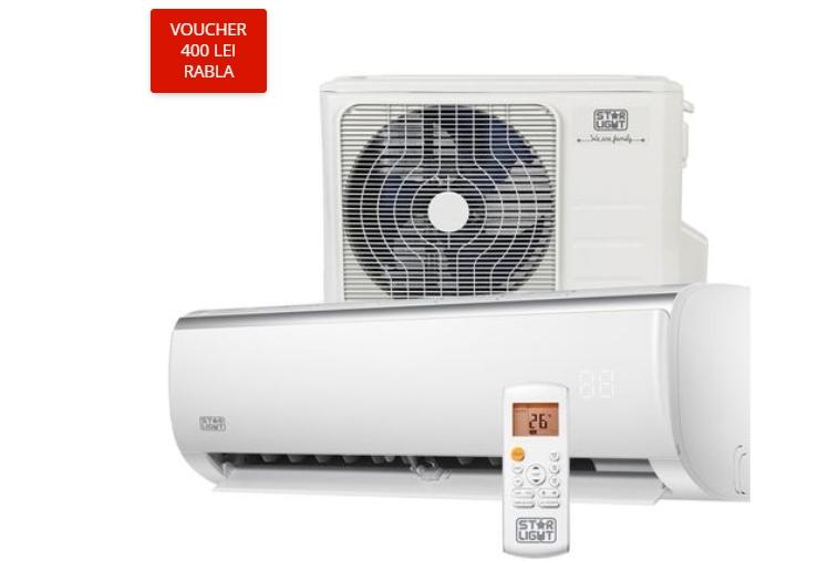 In plus, cei care achizitioneaza aparatul de aer conditionat beneficiaza si de un voucher de 400 de lei prin programul Rabla pentru electrocasnice. Astfel, pretul ajunge la 769,99 lei.