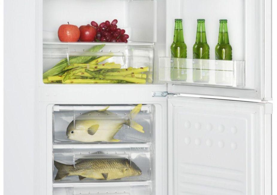Frigiderul are 3 rafturi din sticla, iar congelatorul are si el 3 sertare congelator. Frigiderul are si un compartiment pentru fructe si legume.