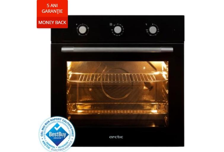1. Un cuptor incorporabil Arctic AROIC21100BH, electric, cu timer, curatare Aqua Drop Clean, de 71 de litri, clasa A de eficienta energetica, de culoare neagra, are o reducere de 34% in campania eMAG reduceri cuptoare incorporabile.