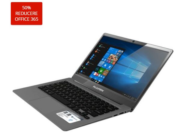 2. Un alt laptop ce ne-a atras atentia este laptopul 2 in 1 Allview Allbook M cu procesor Intel® Celeron® N3350 pana la 2.40 Ghz, cu diagonala de 13,3 inchi, rezolutie Full HD, IPS, Touch, 4GB, 64GB eMMC, Intel® HD Graphics, cu sistemul Microsoft Windows 10 instalat, de culoare gri.